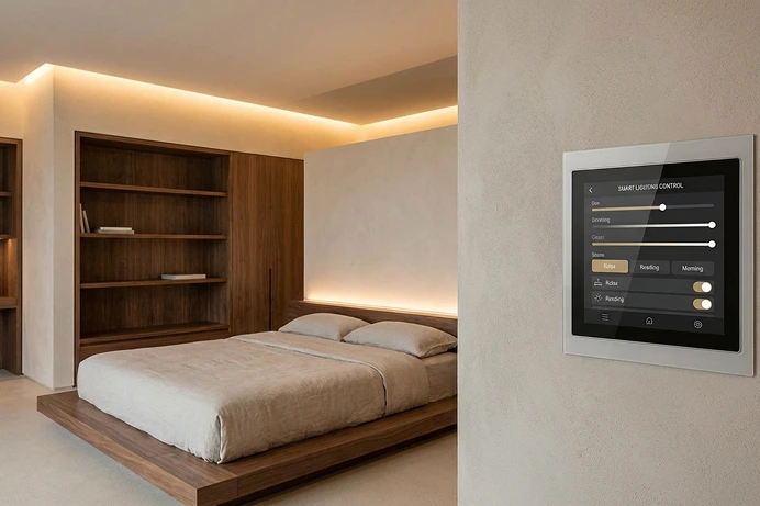 A professional lighting control system that allows you to adjust brightness levels, create lighting scenes, and centrally manage illumination across different zones of the home.